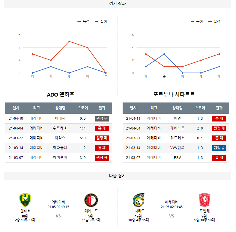 4월 25일 덴하흐 시타르트 분석 에레디비시 축구