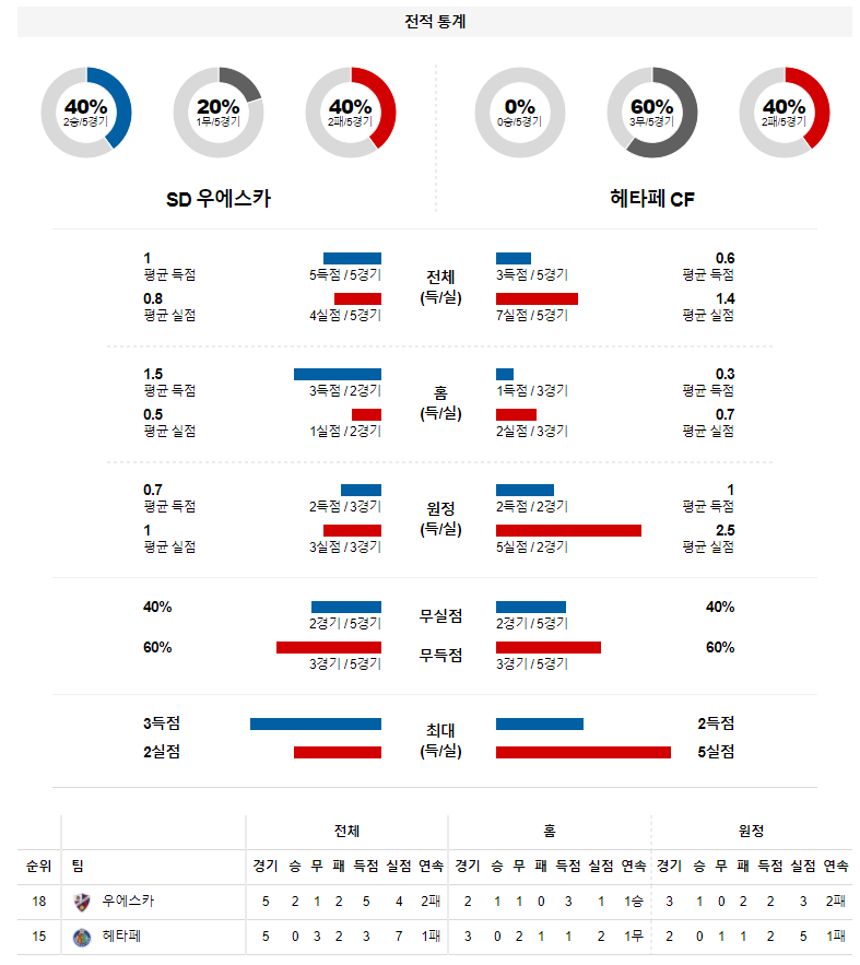 1. 최근 5경기 맞대결 : 5전 0승 2무 3패 (헤타페 우세)