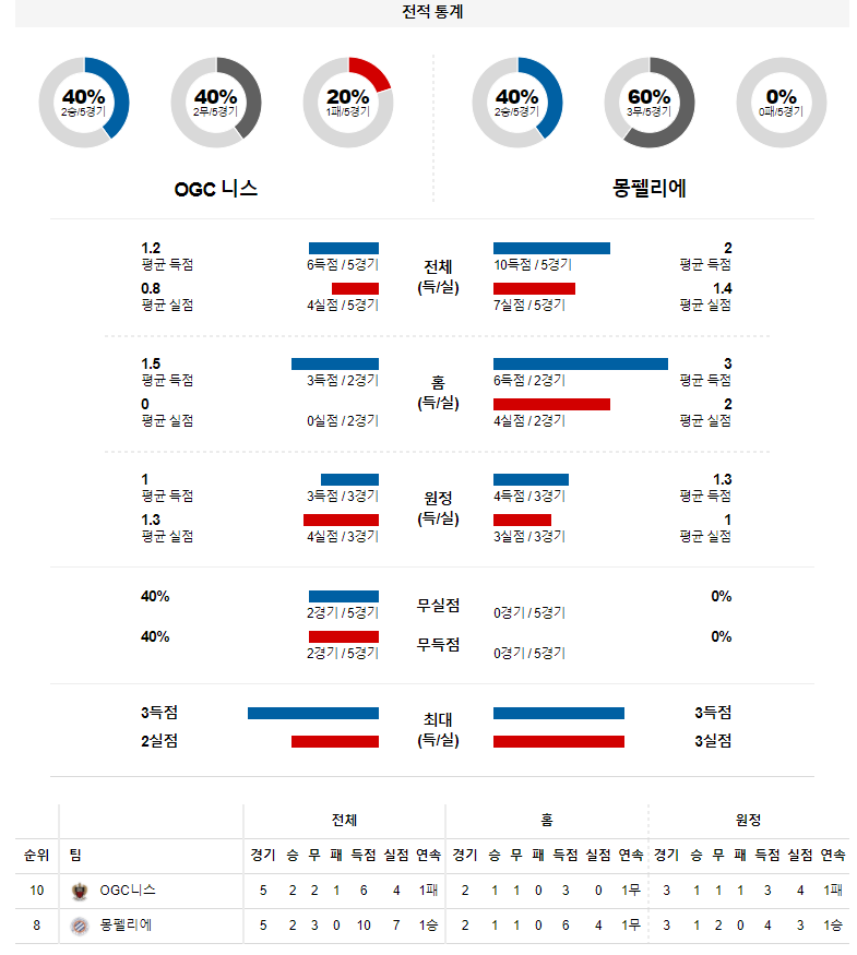 1. 최근 6경기 맞대결 : 6전 4승 2패 8득점 4실점 (몽펠리에 우세)