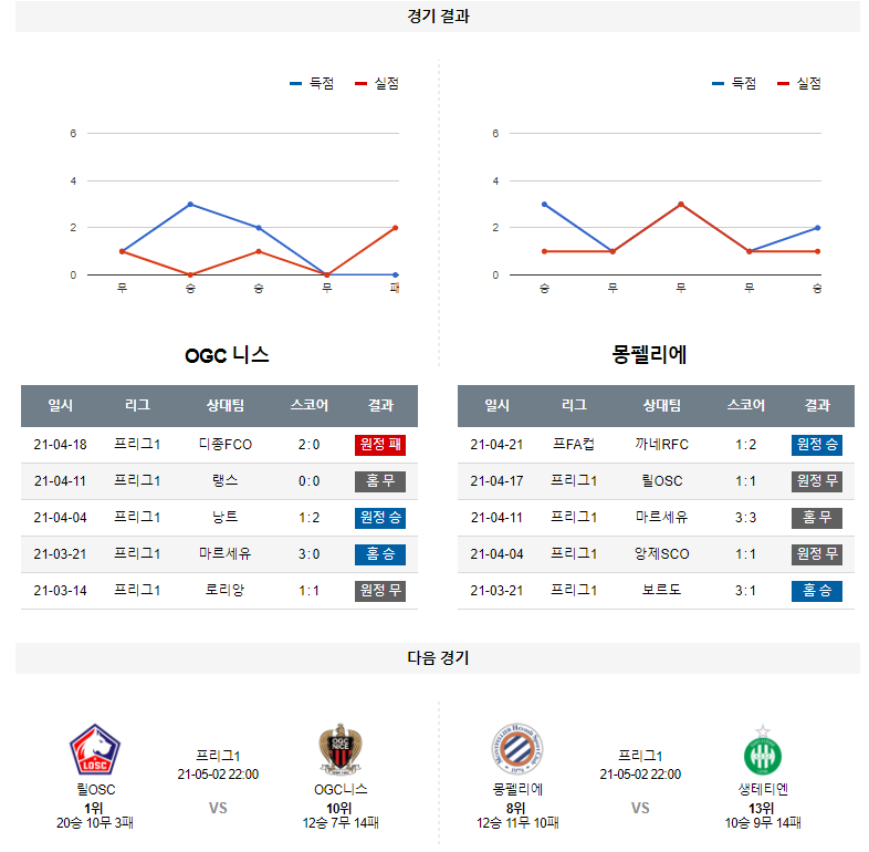 4월 25일 니스 몽펠리에 분석 프랑스 리그 축구