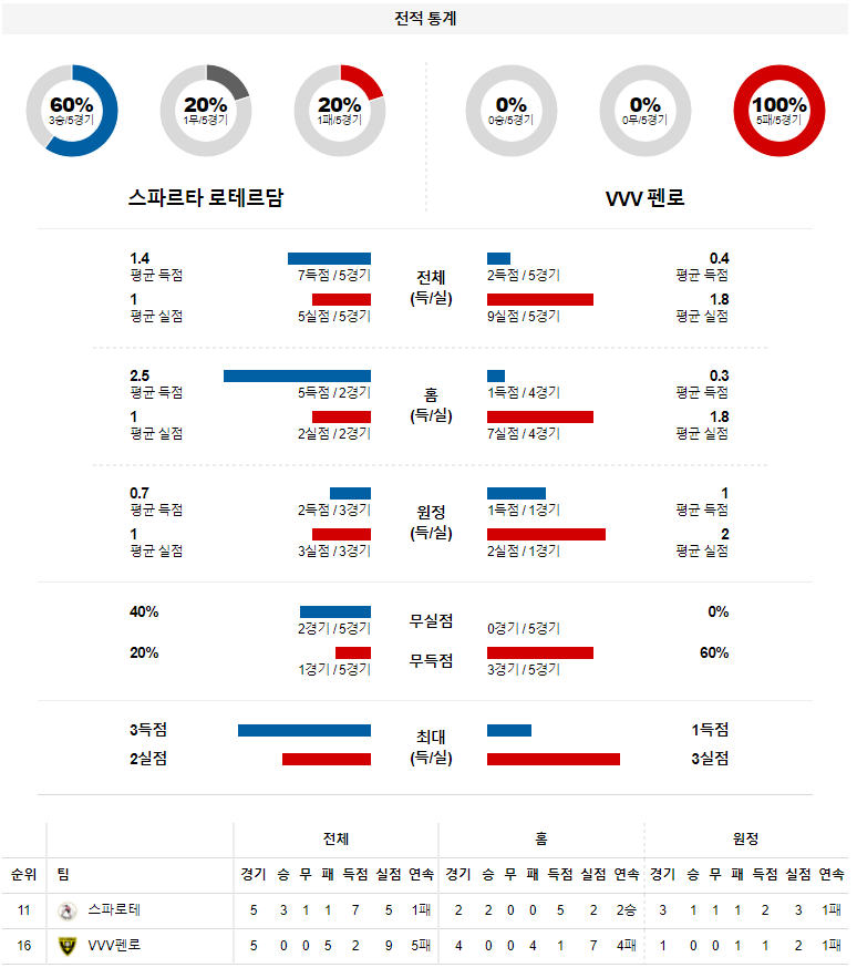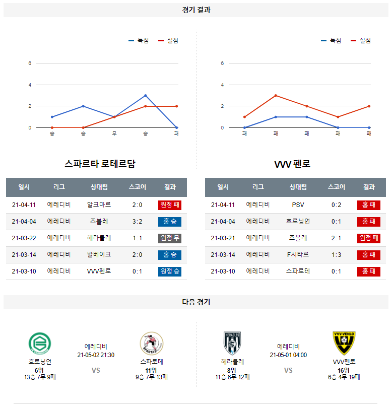 4월 25일 스파르타 펜로 분석 에레디비시 축구