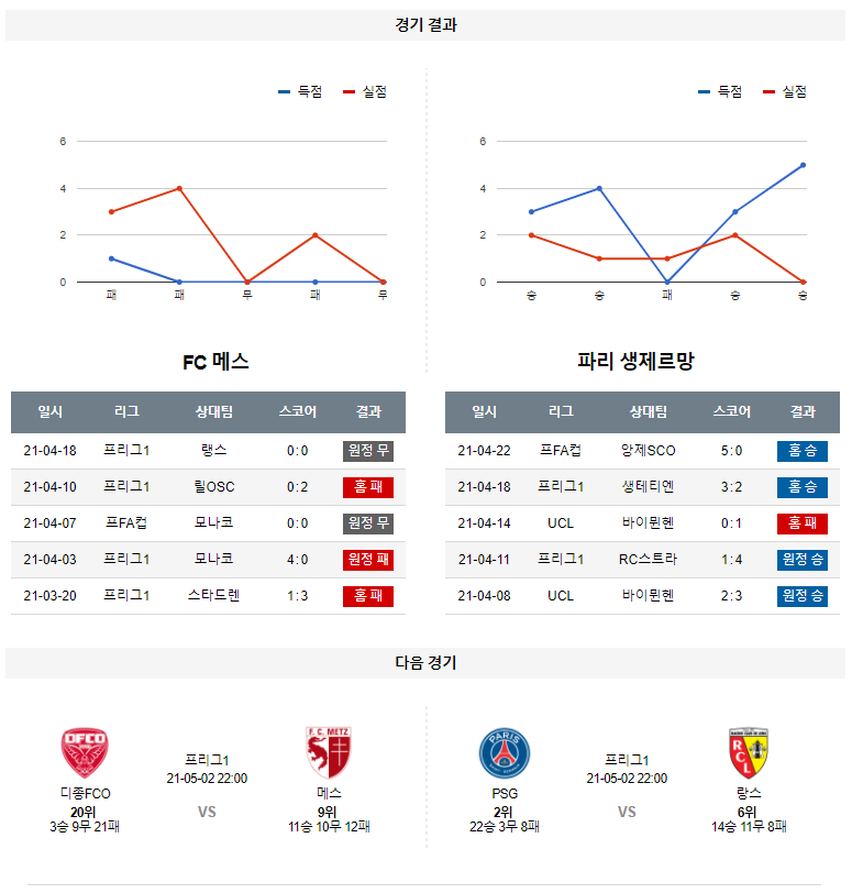 4월 25일 FC메스 파리생제르망 분석 프랑스 리그 축구