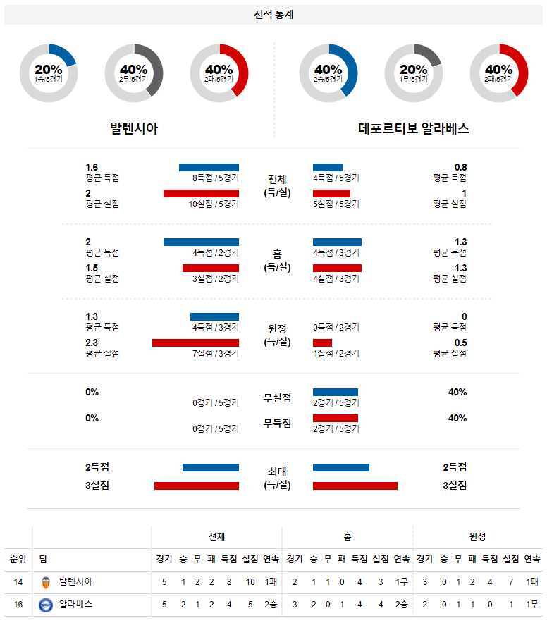 1. 최근 5경기 맞대결 : 5전 2승 2무 1패 (발렌시아 우세)