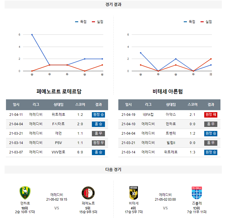 4월 25일 페예노르트 비테세 분석 에레디비시 축구