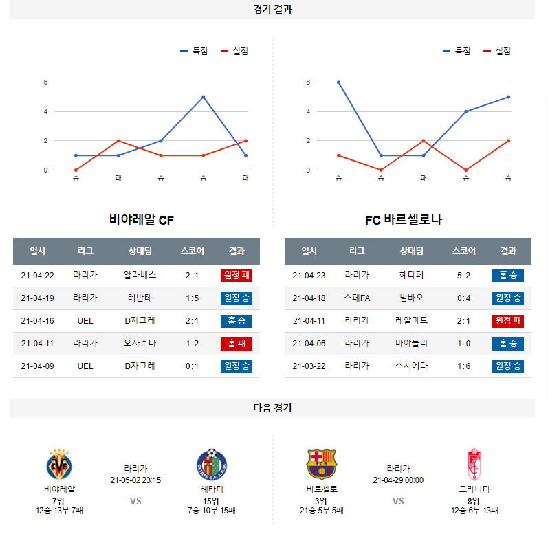 1. 최근 5경기 맞대결 : 5전 0승 1무 4패 (바르셀로나 우세)