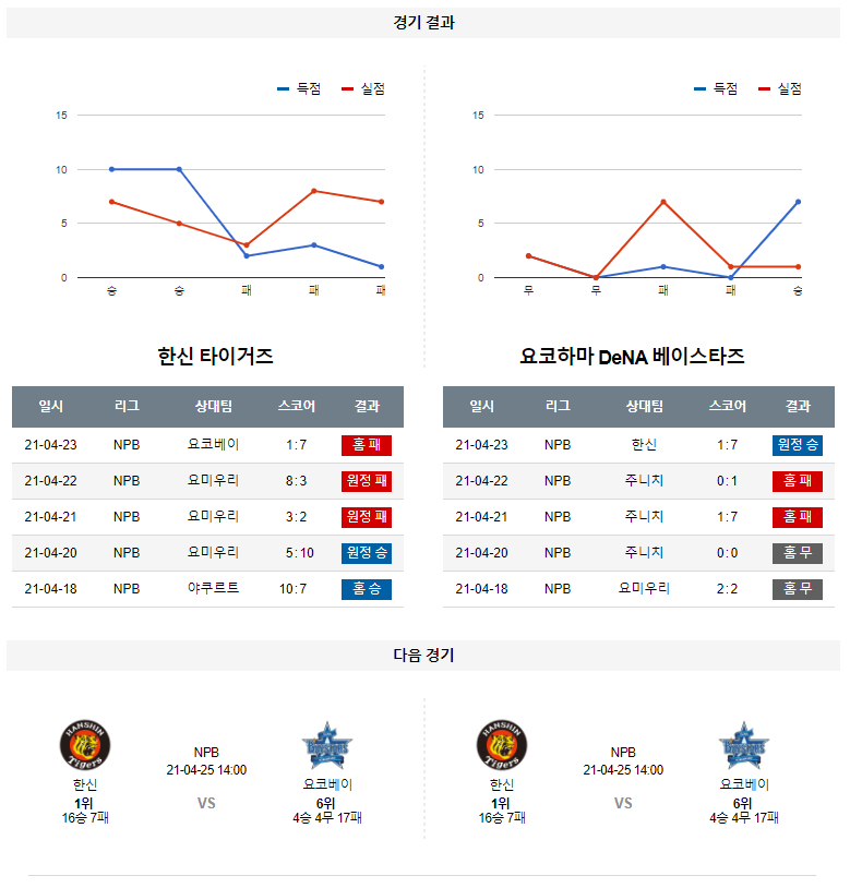 4월 24일 한신 요코하마 분석 NPB 일본 프로야구
