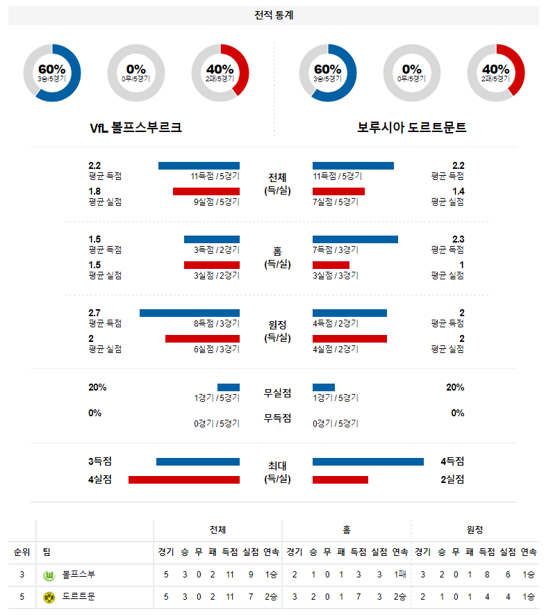 1. 최근 6경기 맞대결 : 6전 5승 1무 10득점 0실점 (도르트문트 우세)