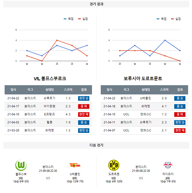 4월 24일 볼프스부르크 도르트문트 분석 분데스리가 축구