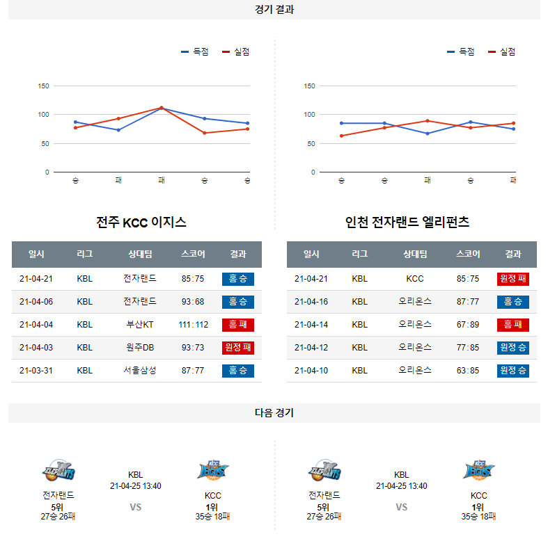 4월 23일 KCC 전자랜드 분석 KBL 농구