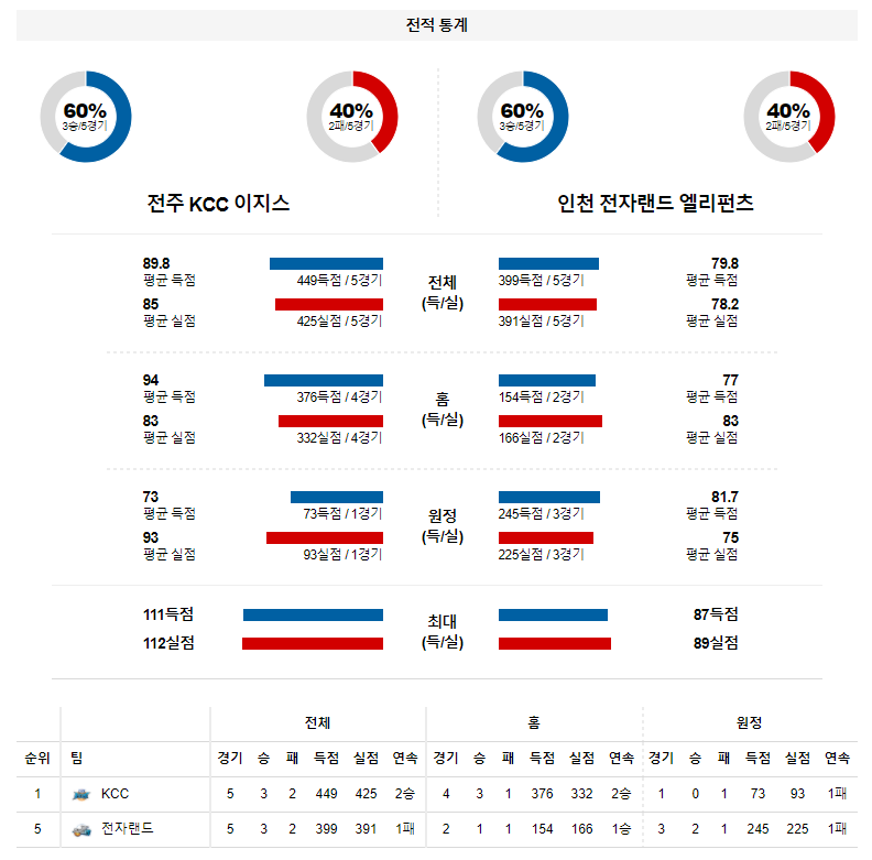 [핸디캡 -5.5] 전주 KCC 이지스 승 (추천 o)