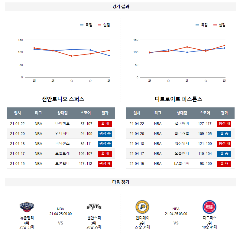 4월 23일 샌안토니오 디트로이트 분석 NBA 농구