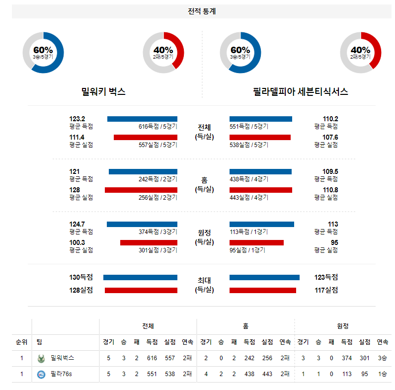 1차전 에서는 밀워키가 원정에서 연장전 승부 끝에 109-105 승리를 기록했다. 필라델피아가 전일 피닉스와 경기에서 에너지를 많이 쏟아 부었다는 것에 베팅 포커스를 맞춰야 한다.