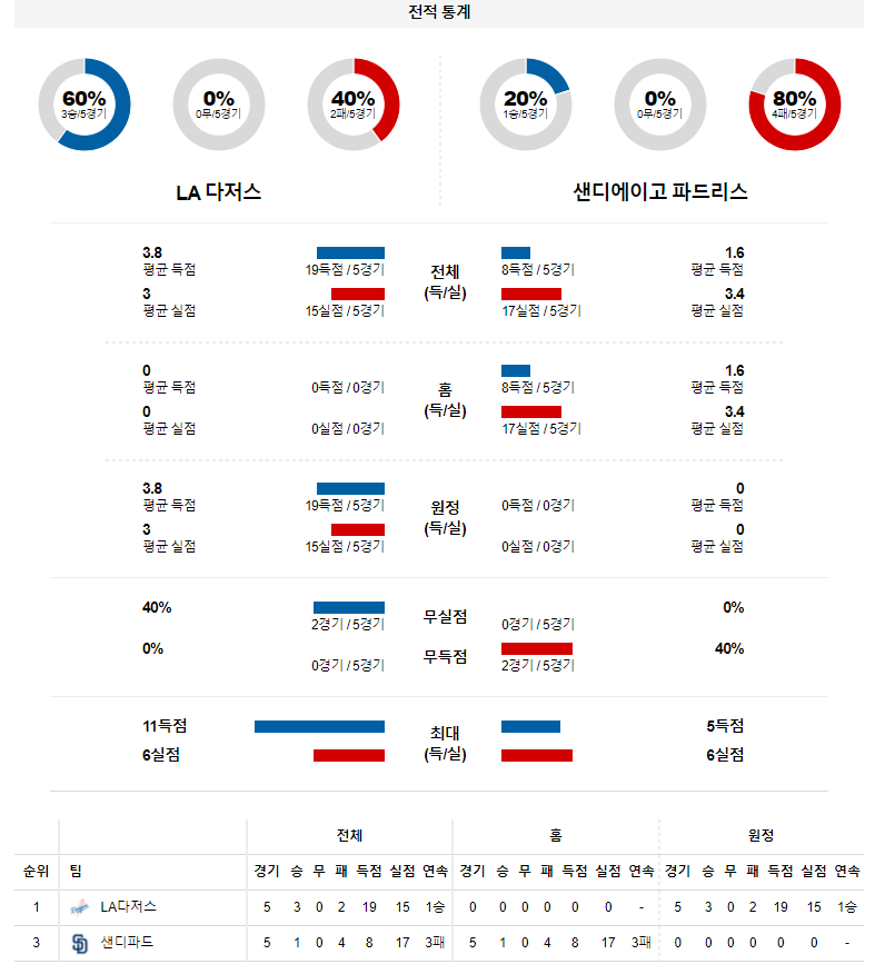 다저스는 뷸러와 불펜진 모두 안정적이다. 직전 경기에서 멀티 히트를 기록한 트렌트 그리샴을 막아낼 가능성이 높다. 반면 샌디에이고는 웨더스가 안정적이지만 불펜진이 불안하다. 3할 타자인 저스틴 터너를 막지 못하며 다저스가 승리할 전망이다.