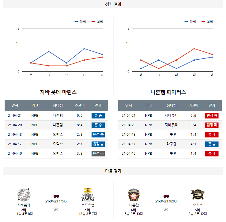 4월 22일 지바롯데 니혼햄 분석 NPB 일본 프로야구
