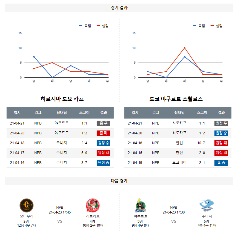4월 22일 히로시마 야쿠르트 분석 NPB 일본 프로야구