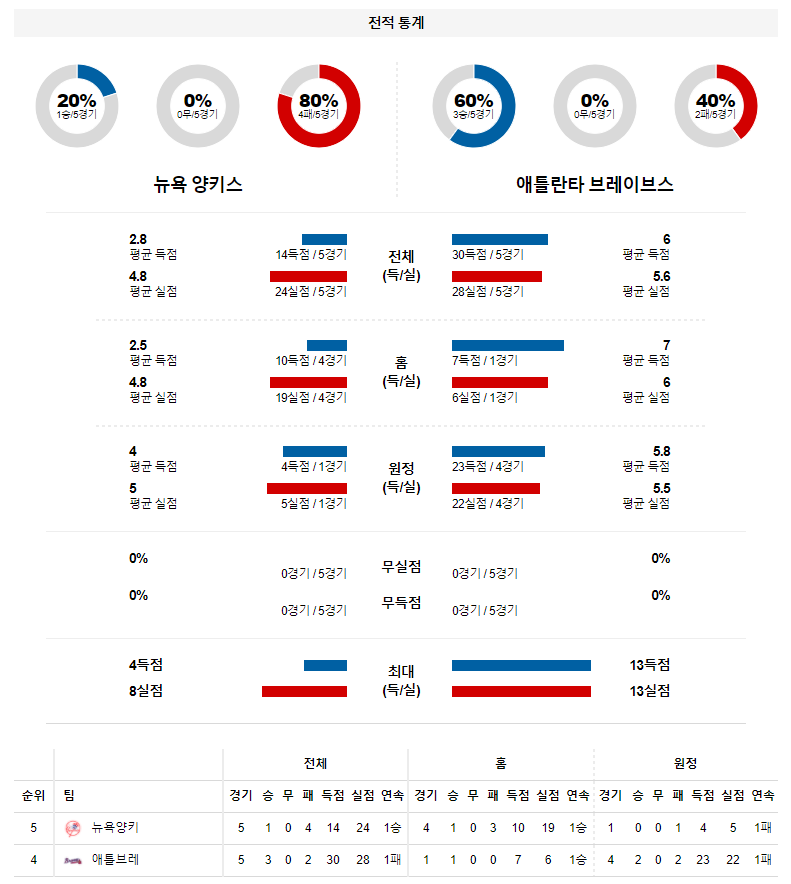 4월 22일 뉴욕양키스 애틀란타 분석 MLB 미국 프로야구