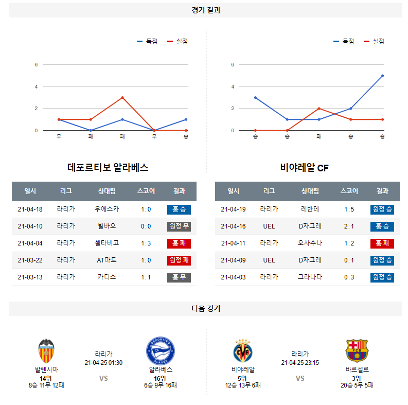 4월 22일 알라베스 비야레알 분석 프리메라리가 축구