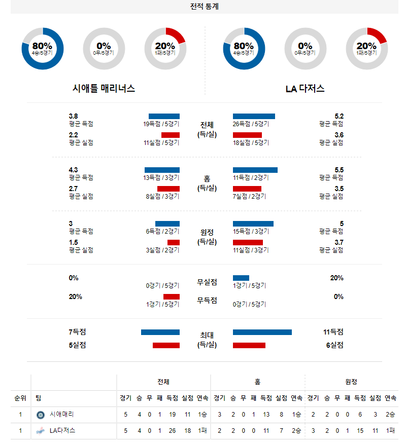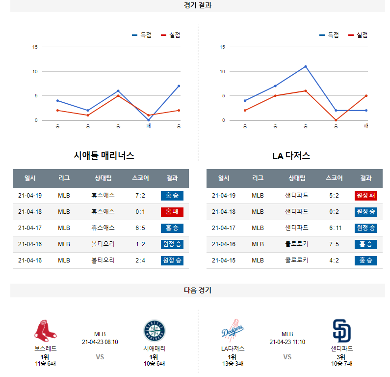 4월 21일 시애틀 LA다저스 분석 MLB 미국 프로야구