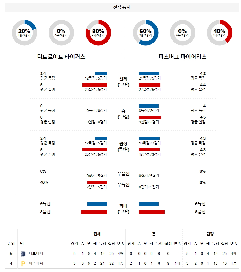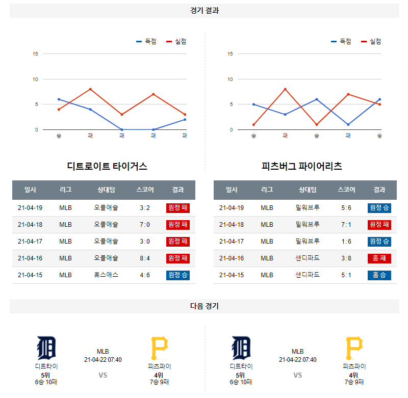 4월 21일 디트로이트 피츠버그 분석 MLB 미국 프로야구
