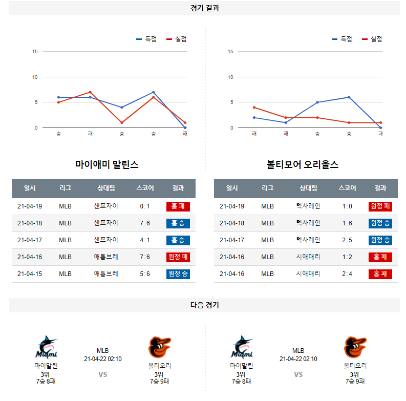 4월 21일 마이애미 볼티모어 분석 MLB 미국 프로야구