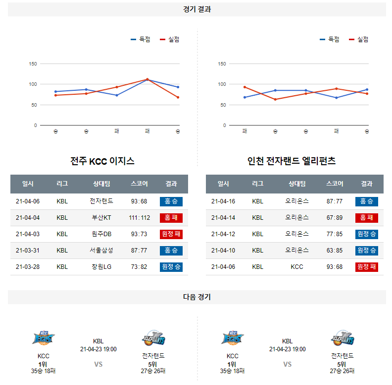 4월 21일 KCC 전자랜드 분석 KBL 농구