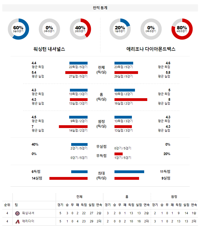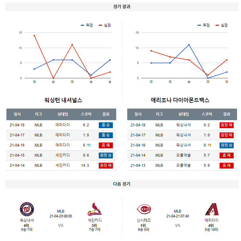 4월 19일 워싱턴 애리조나 분석 MLB 미국 프로야구