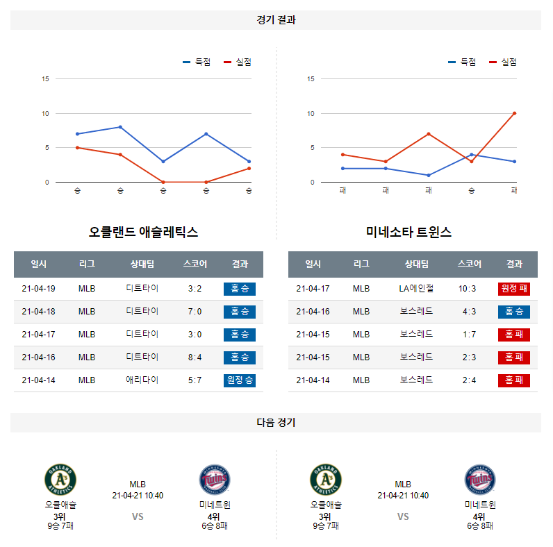 4월 20일 오클랜드 미네소타 분석 MLB 미국 프로야구