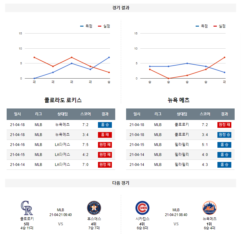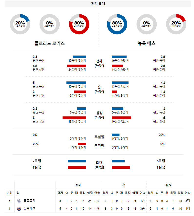 4월 19일 콜로라도 뉴욕메츠 분석 MLB 미국 프로야구