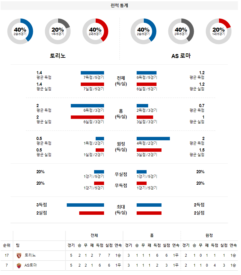 1. 최근 6경기 맞대결 : 6전 5승 1패 13득점 7실점 (로마 우세)