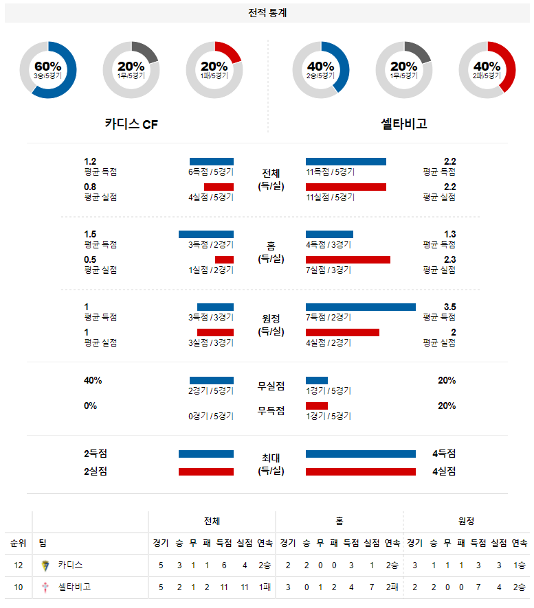 1. 최근 5경기 맞대결 : 5전 1승 0무 4패 (셀타 비고 우세)
