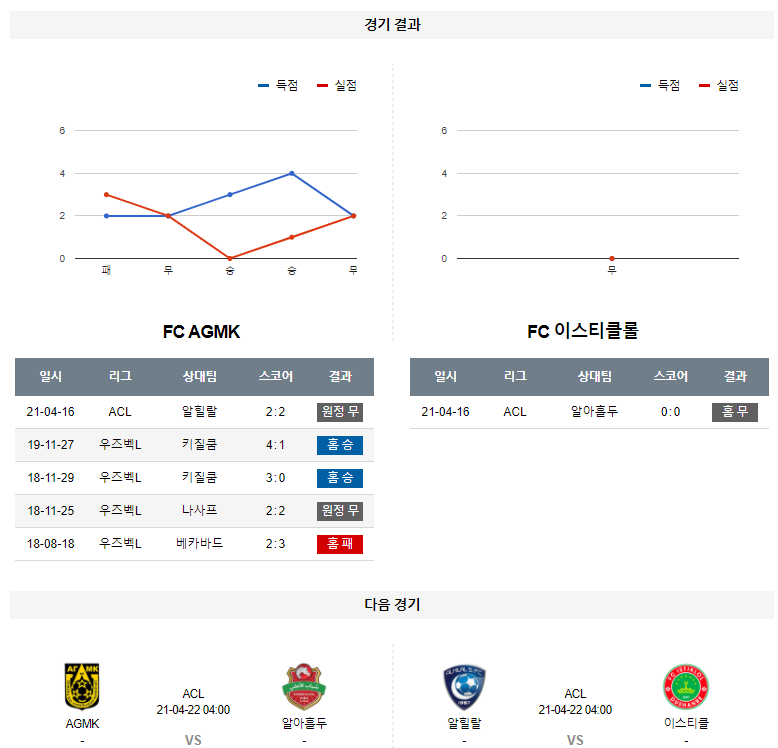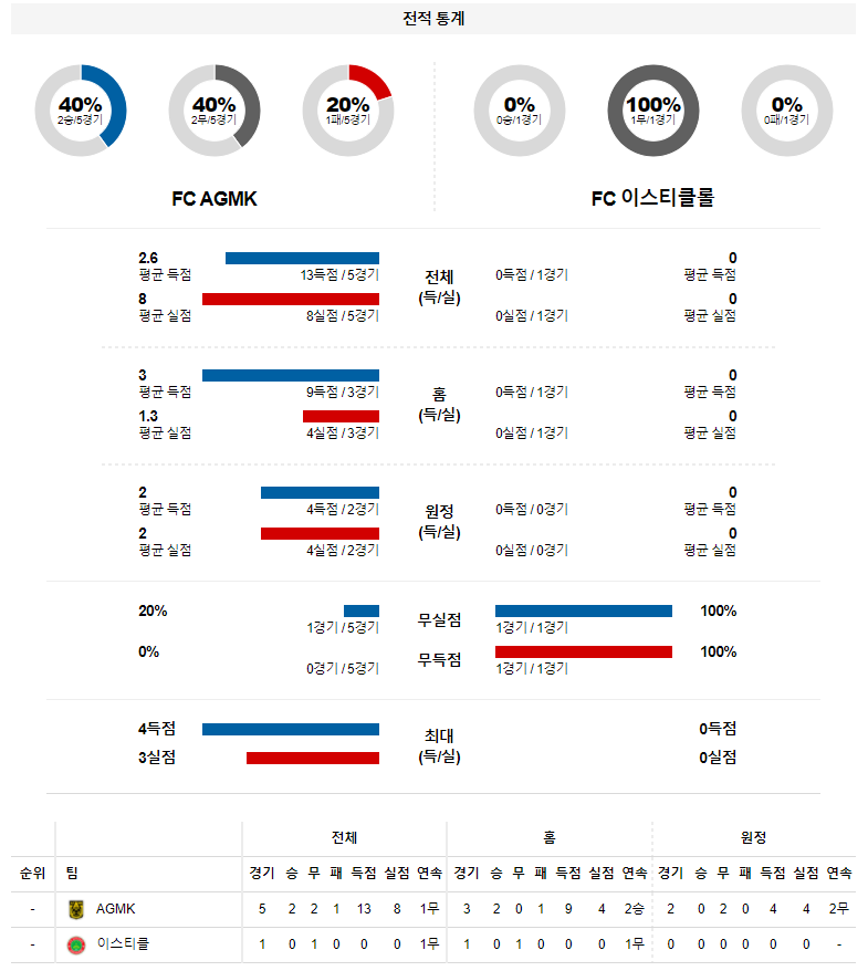2. AGMK 이번 시즌 자국 리그 홈 성적 : 3전 2승 1패 (무실점 비율 : 0%, 무득점 비율 : 33%)