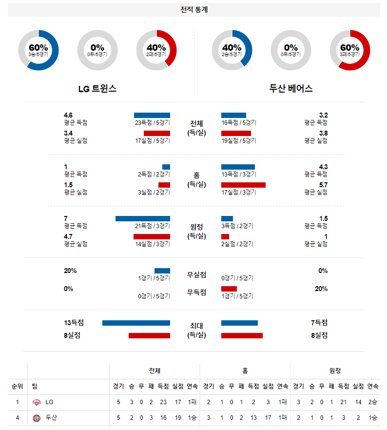 4월 18일 LG 두산 분석 KBO 한국 프로야구