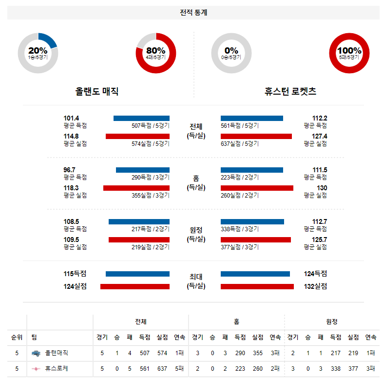 지난 토론토 전에서 102-113 패배를 당했다. 탱킹 레이스에서 우위를 점하기 위해 노력하고 있고, 주전+벤치 대결 구간 조합에 전혀 신경을 쓰지 않는 모습이다. 그러나 휴스턴보다는 확실히 안정적인 경기력을 선보이고 있다. 웬델 카터 주니어, 콜 앤서니, 추머 오키키까지 모두 득점력이 나쁘지 않은 만큼 이번 경기에서 반등 가능성이 충분하다.