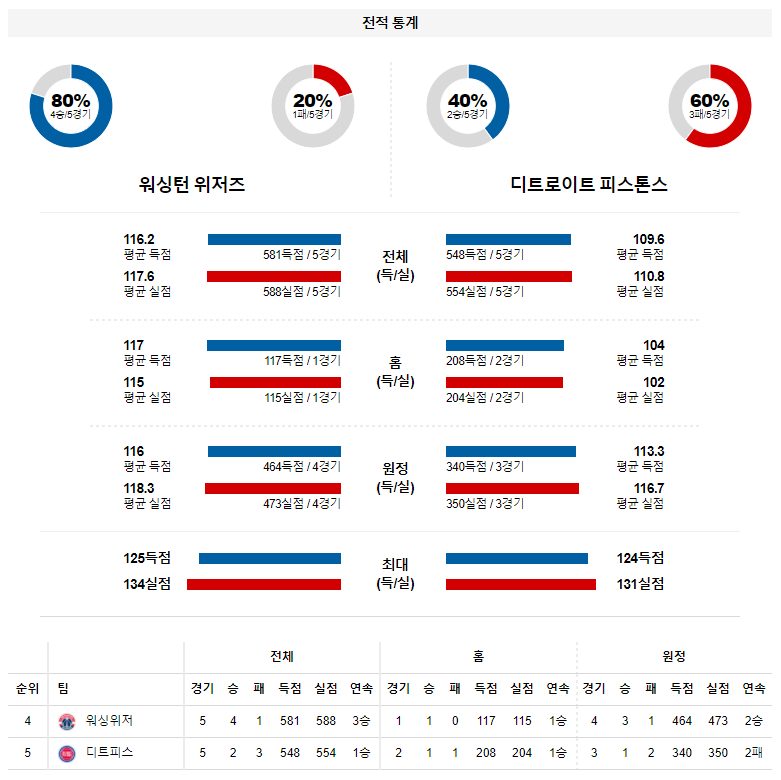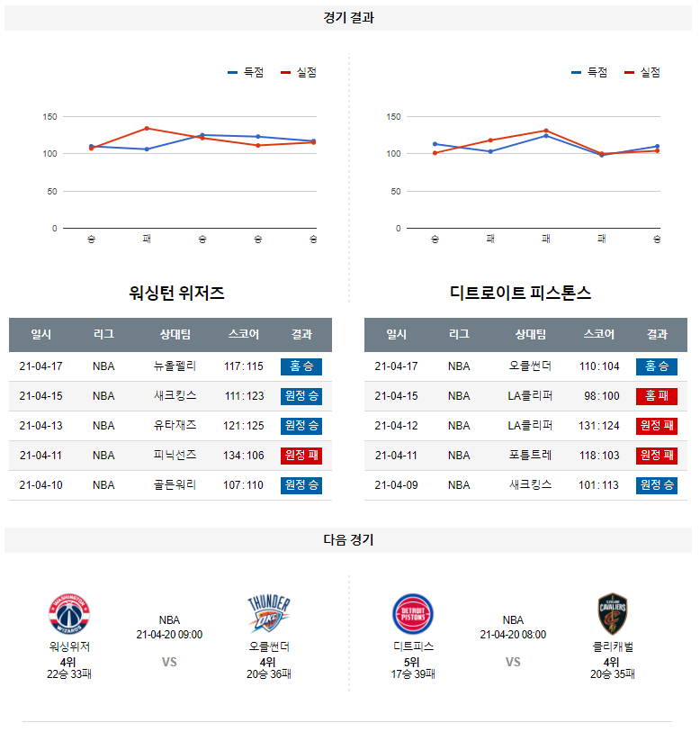 4월 18일 워싱턴 디트로이트 분석 NBA 농구