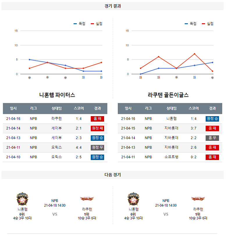 4월 17일 니혼햄 라쿠텐 분석 NPB 일본 프로야구