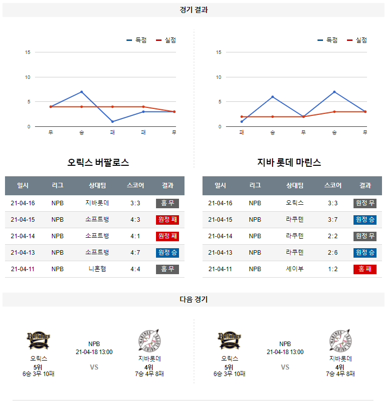 4월 17일 오릭스 지바롯데 분석 NPB 일본 프로야구