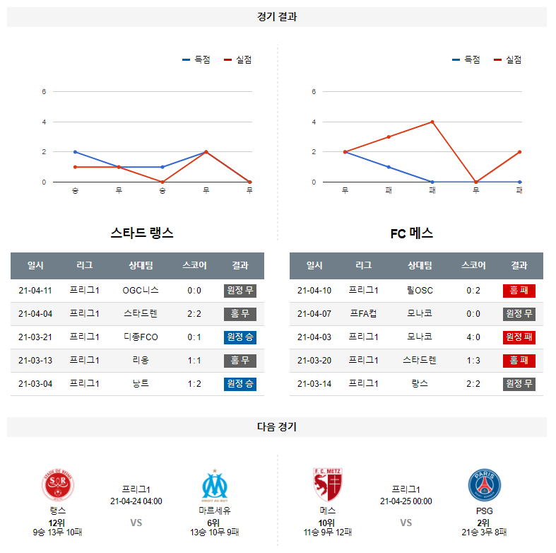 4월 18일 랭스 메스 분석 프랑스 리그 축구