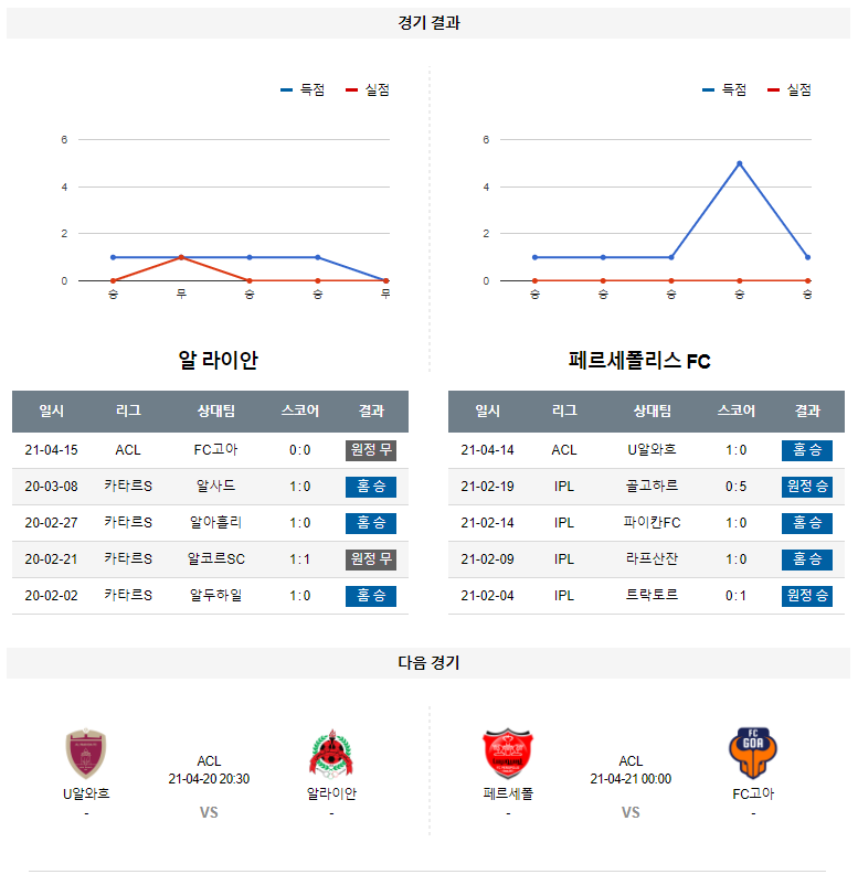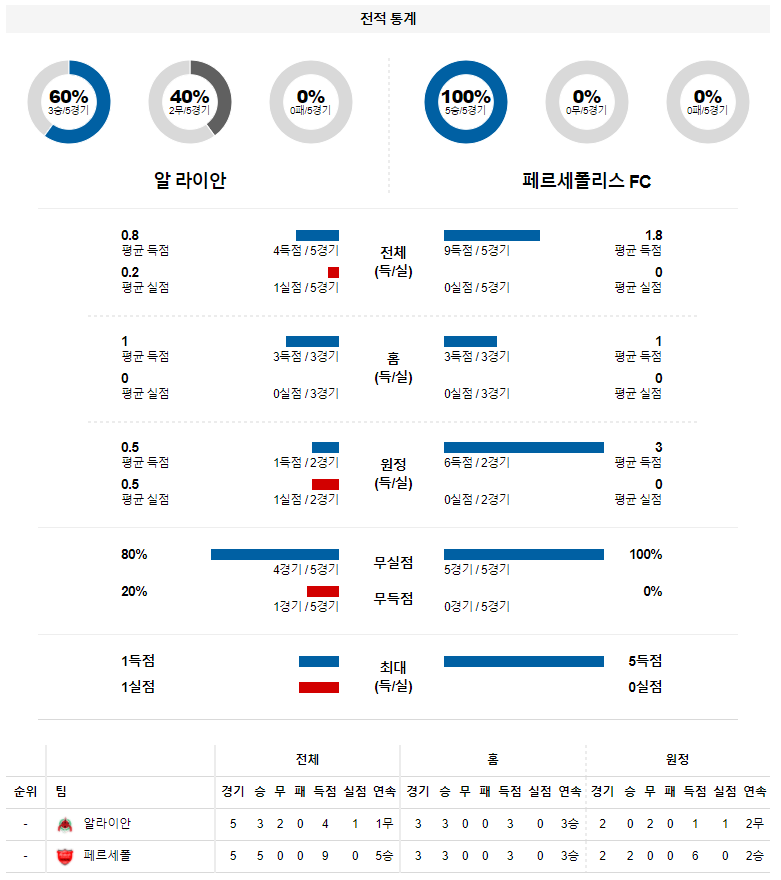1. 최근 2경기 맞대결 : 2전 1승 1무 3득점 1실점 (알라이얀 우세)