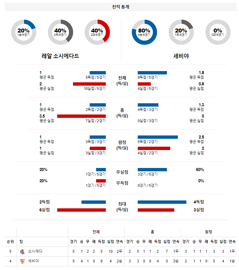 1. 최근 5경기 맞대결 : 5전 0승 2무 3패 (세비야 우세)