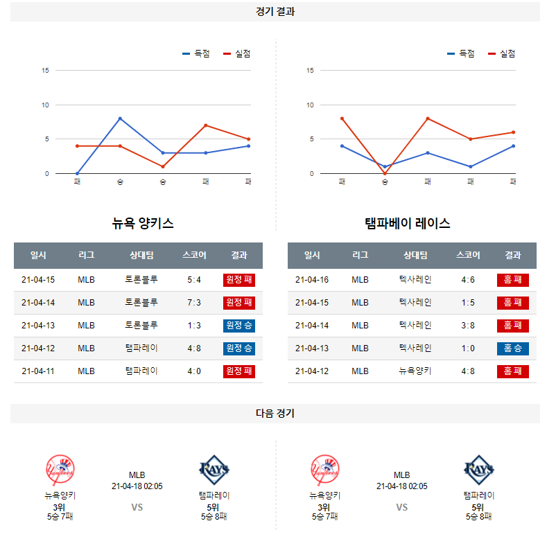 4월 17일 뉴욕양키스 탬파베이 분석 MLB 미국 프로야구
