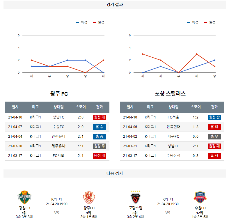 4월 17일 광주FC 포항스틸러스 분석 K리그 축구