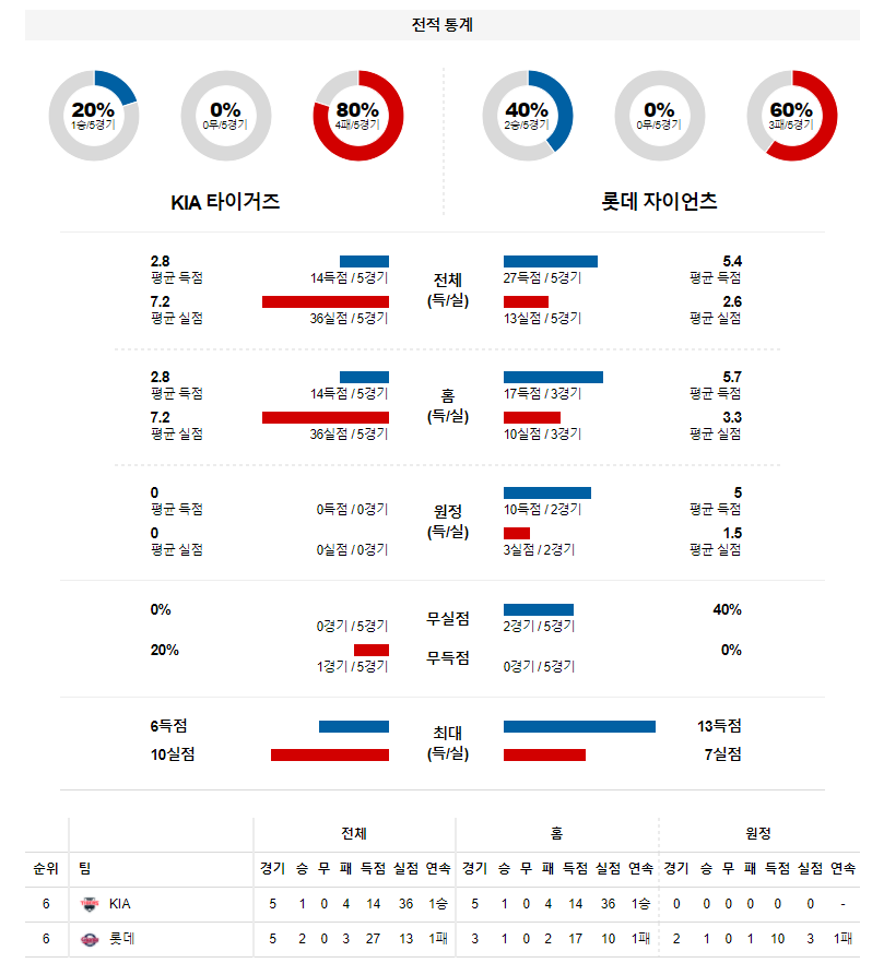 브룩스는 지난 시즌 롯데에게 강했다. 직전 경기에서 3안타를 때려낸 정훈을 막아낼 가능성이 충분하다. 반면 이승헌은 지난 시즌 KIA에게 약했다. 4할 타자인 김선빈과 3할 타자인 류지혁을 막지 못하며 KIA가 승리할 전망이다.