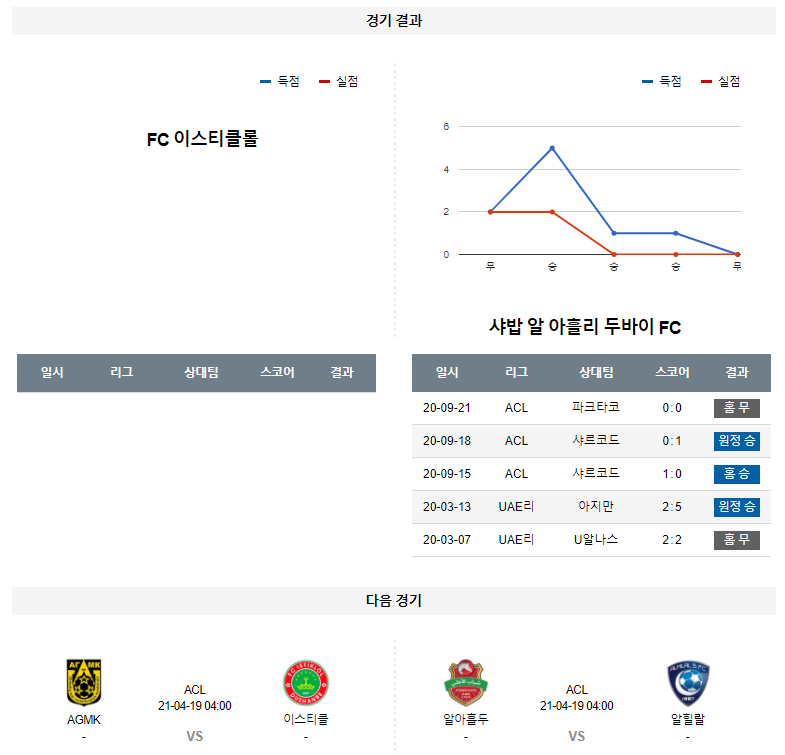 4월 16일 이스티클롤 알아흘리두바이 분석 AFC챔피언스리그 축구