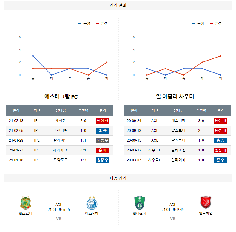4월 16일 에스테그랄 알아흘리 분석 AFC챔피언스리그 축구