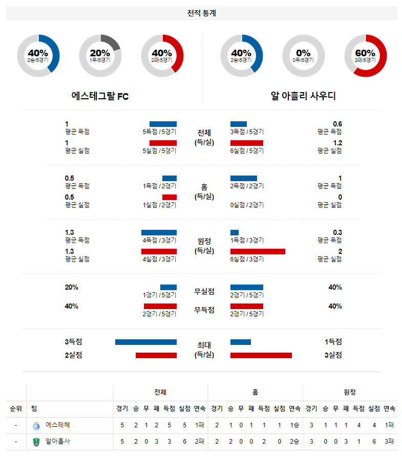 1. 최근 4경기 맞대결 : 4전 3승 1패 8득점 4실점 (에스테그랄 우세)