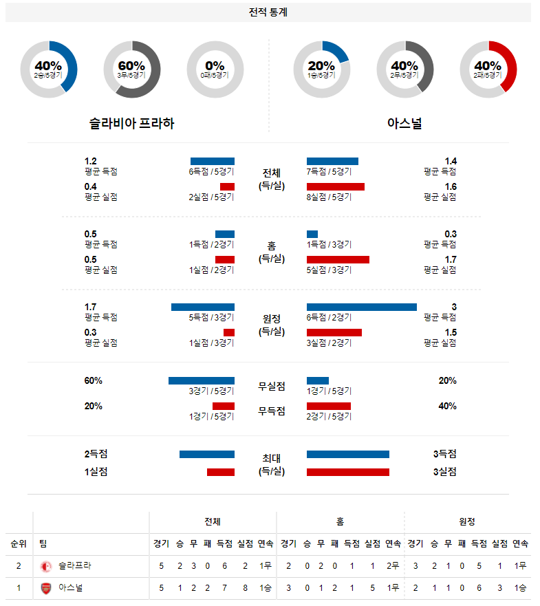 2. 슬라비아 프라하 이번 시즌 유로파 리그 홈 성적 : 5전 3승 2무 (무실점 비율 : 60%, 무득점 비율 : 20%)