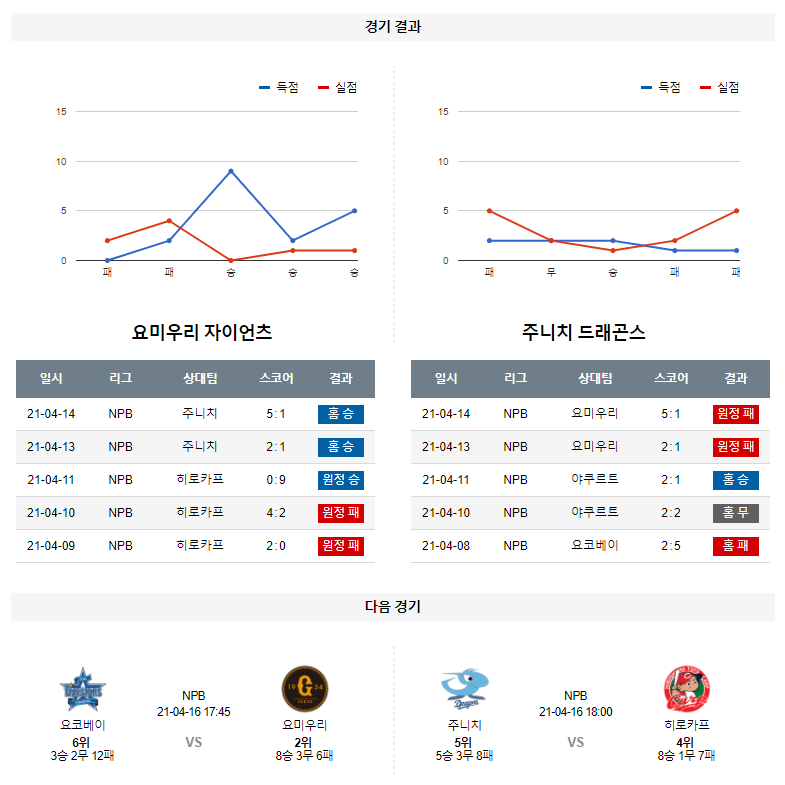 4월 15일 요미우리 주니치 분석 NPB 일본 프로야구