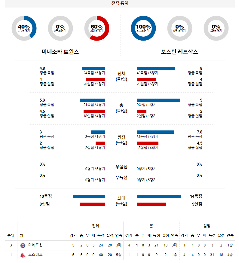 4월 15일 미네소타 보스턴 분석 MLB 미국 프로야구