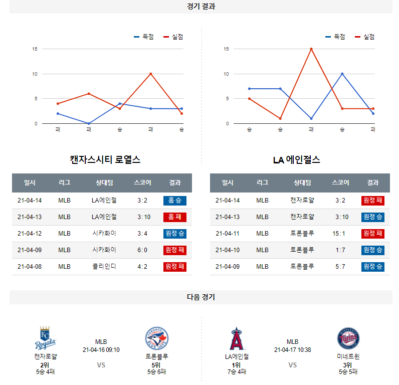 4월 15일 캔자스시티 LA에인절스 분석 MLB 미국 프로야구