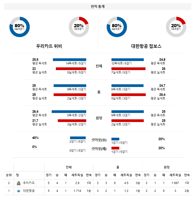 2라운드 맞대결 에서는 대한항공이 홈에서 3-1(25:22, 16:25, 25:15, 25:23) 승리를 기록했다.